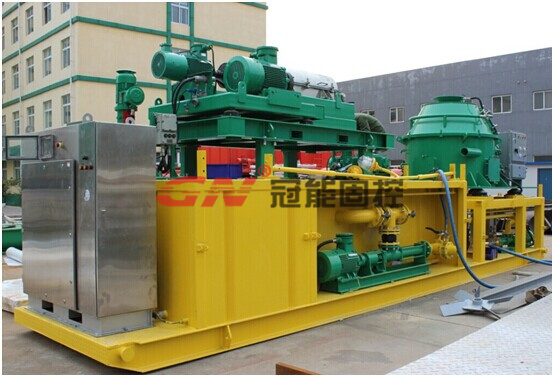 2、排出的干渣經(jīng)過另一臺螺旋輸送機(jī)輸送至收集處,液體流向離心機(jī)進(jìn)行第二步的精細(xì)固液分離處理。分離干凈的泥漿儲存起來準(zhǔn)備鉆機(jī)繼續(xù)回用。