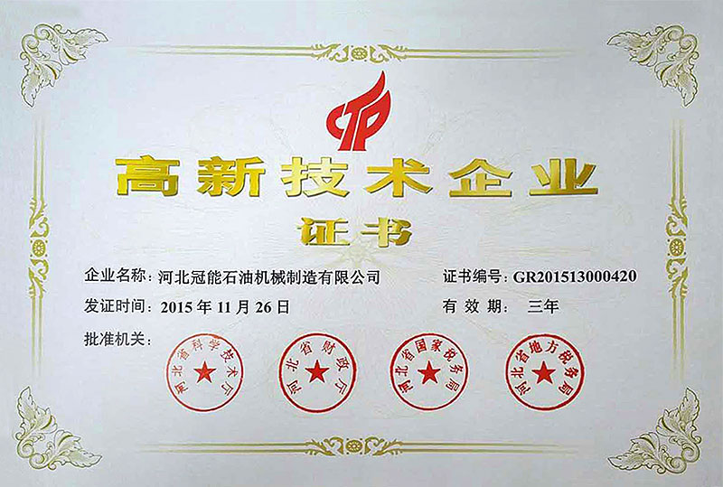 近日,河北冠能固控榮獲“高新技術(shù)企業(yè)”證書。由全國高新技術(shù)企業(yè)認(rèn)定管理工作領(lǐng)導(dǎo)小組審定,省科技廳、省財(cái)政廳、省國家稅務(wù)局、省地方稅務(wù)局聯(lián)合正式頒發(fā)“高新技術(shù)企業(yè)”榮譽(yù)證書。這是相關(guān)政府部門給與冠能固控持續(xù)進(jìn)行研究開發(fā)與技術(shù)成果轉(zhuǎn)化的發(fā)展模式的肯定,更預(yù)示著冠能固控未來的發(fā)展將步入科技創(chuàng)新的快車道。