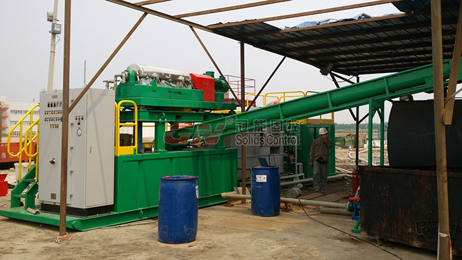 冠能離心機通過化學絮凝處理中海油油基污泥現場視頻